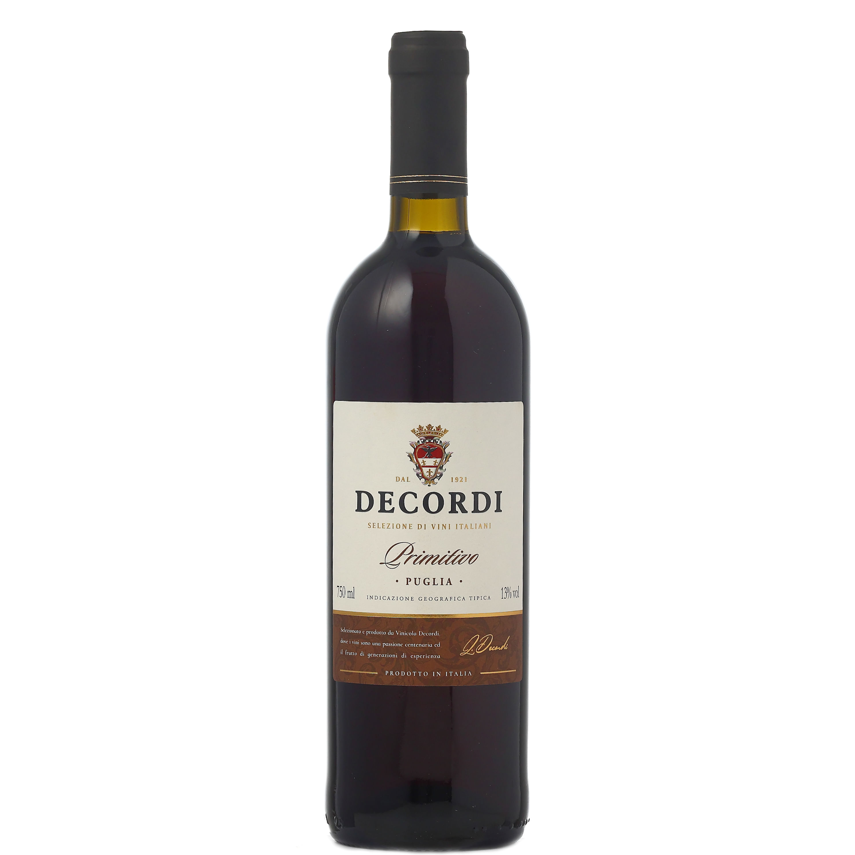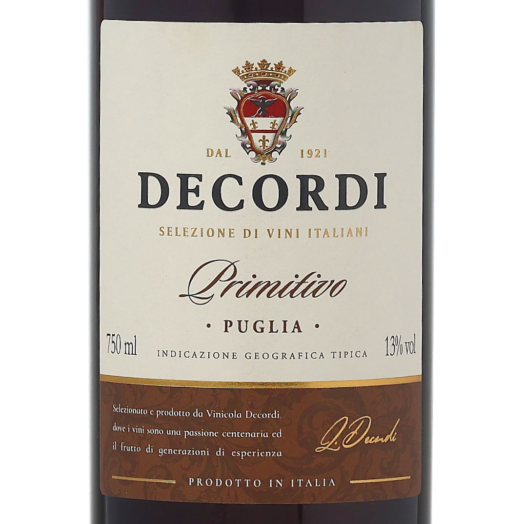 Um elegante Primitivo di Puglia, elaborado pela tradicional família Decordi.