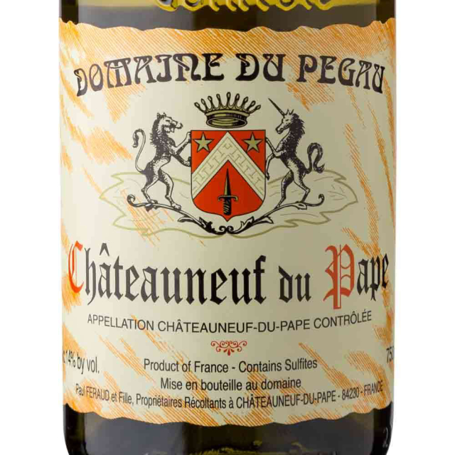 Em 1987, o Domaine du Pegau foi fundado como o conhecemos hoje, quando Laurence Feraud (filha de Paul Feraud) retornou de seus estudos de enologia e se juntou a seu pai para criar a vinícola. “Pegau” era o nome de uma jarra de vinho utilizada no século XIV durante o período papal.