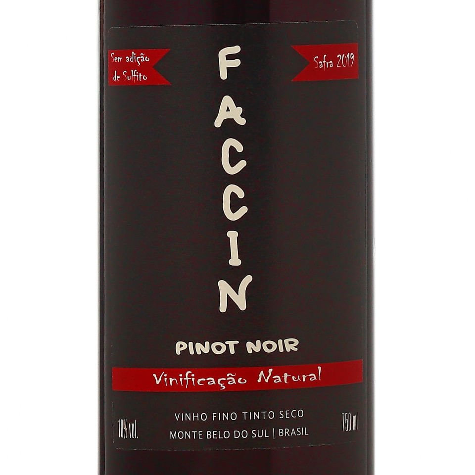 Destacamos aqui um lindo e distinto Pinot Noir 100% natural, elaborado artesanalmente pela vinícola Faccin, um pequeno produtor de peso da Serra Gaúcha, que nunca deixou de nos surpreender. As uvas deste tinto são minuciosamente selecionadas e colhidas à mão. A vinificação natural é feita a partir de fermentação espontânea por leveduras selvagens, contidas na casca da própria uva. O vinho não leva adição de sulfitos, nem de açúcar para aumentar o álcool e não é filtrado. Os produtores dos vinhos naturais acreditam que assim, com o mínimo de intervenção humana possível, o vinho pode expressar mais claramente a essência de sua safra e terroir. Ao servir, percebemos a cor rubi turvo em taça. Aromas instigantes de frutas vermelhas, em especial morango e framboesa. Em boca entra com uma excelente acidez, uma certa leveza e mantendo uma ótima persistência. Sabores deliciosos de framboesa não maduras, com toques cítricos de mixirica. Seus levíssimos taninos resultam em um vinho leve e equilibrado. Uma excelente escolha para harmonizar com peixes mais carnudos, aves diversas ou até frutos do mar. *Recomendamos deixar este vinho na horizontal por uns dias após receber e manter fora de sol ou ambientes úmidos. Para consumir nos próximos 12 - 18 meses. Medalha Gold 90 Pontos - Wines of Brazil Awards 2019