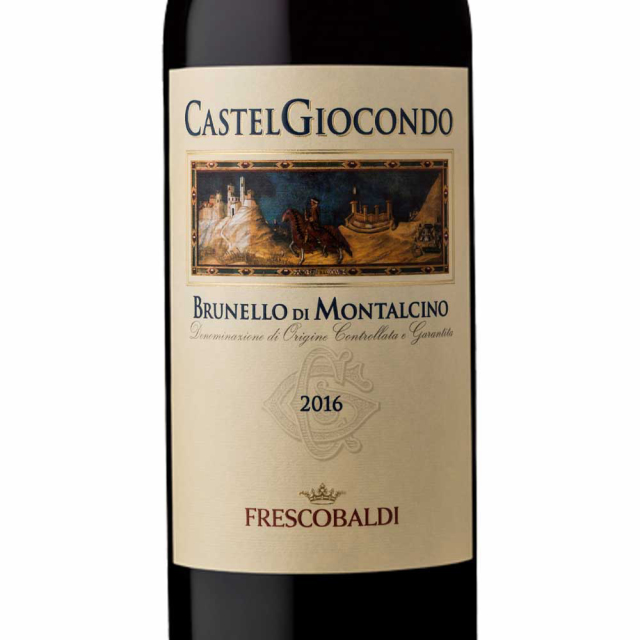 Uma das quatro primeiras a elaborar Brunello di Montalcino nos anos 1800, sua importância histórica é representada no rótulo de CastelGiocondo pela figura de um condottiere, num famoso afresco do artista sienense Simone Martini. A representação do artista mostra Guidoriccio Fogliano, comandante das tropas de Siena que, em 1323, liderou o ataque ao castelo de Montemassi, um momento histórico que coincidiu com o início da aventura secular da família Frescobaldi no mundo do vinho.