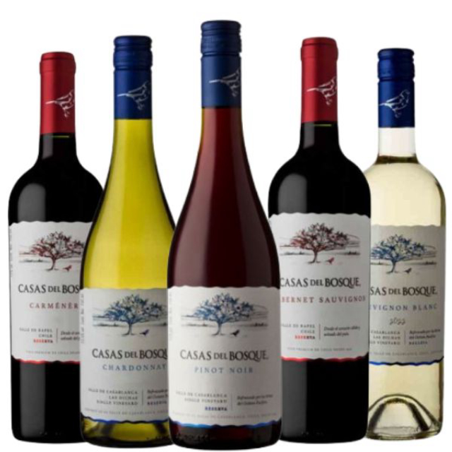 Uma coleção dos expressivos varietais Reserva da prestigiosa Casas del Bosque com ótima relação valor x qualidade.