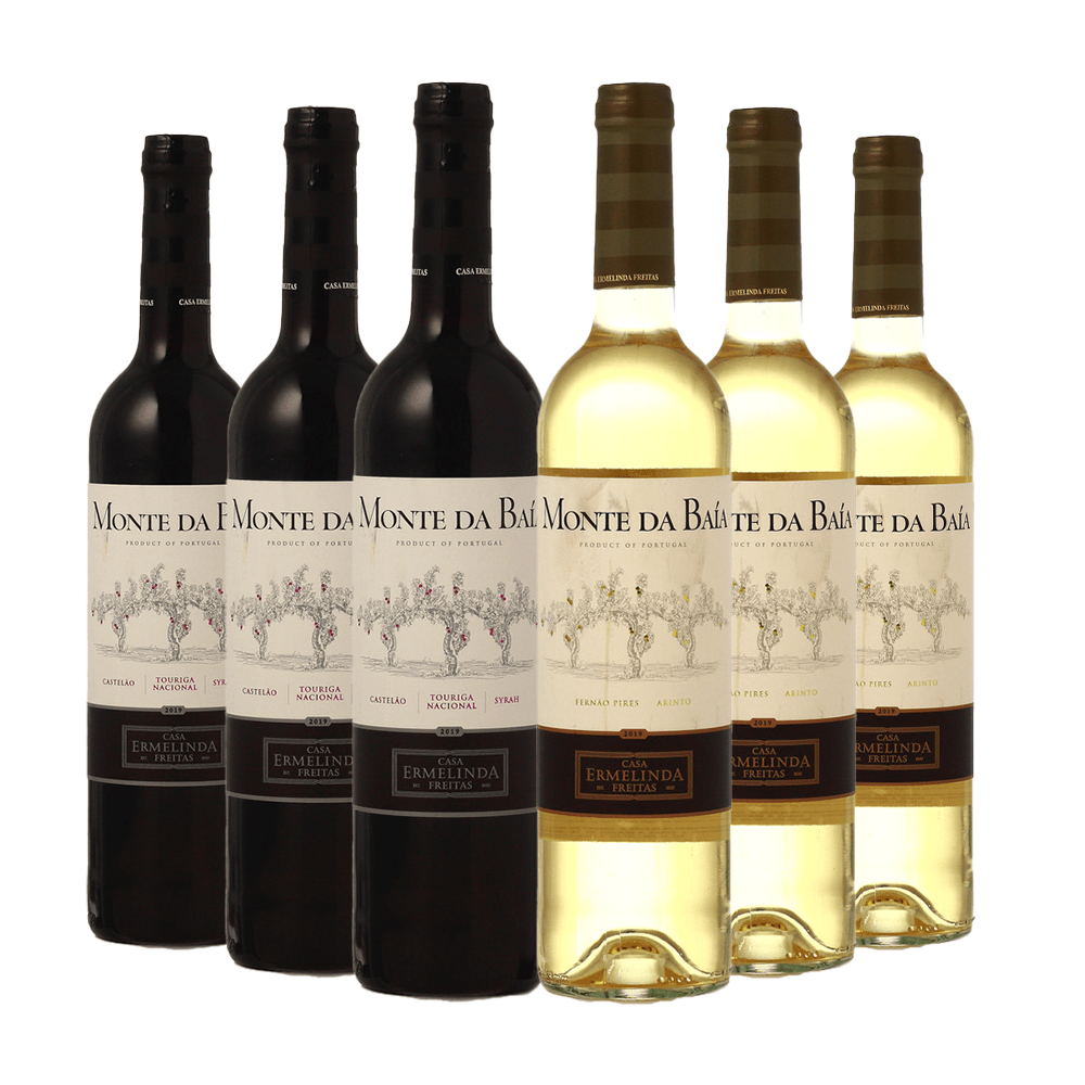 A Caixa Mista Ermelinda Freitas “Monte da Baía” é composta por 3 unidades do Ermelinda Freitas “Monte da Baía” Tinto e 3 unidades do Ermelinda Freitas “Monte da Baía” Branco. O Ermelinda Freitas “Monte da Baía” Branco é um lindo blend que combina harmoniosamente o perfil aromático da casta Fernão Pires, com a acidez e o frescor da Arinto. De cor amarelo palha, com reflexos esverdeados, entrega aromas de frutas tropicais, lima, maçã verde e notas minerais. Em boca, destaque para seu frescor e acidez, com notas florais e de frutas cítricas. Insinuante e delicioso! O Ermelinda Freitas “Monte da Baía” Tinto é elaborado a partir das castas Touriga Nacional, Syrah e Castelão, este lindo blend evoluiu por cerca de 4 meses em barricas de carvalho americano e francês. De brilhante cor rubi, expressa aromas de frutas vermelhas, como framboesas e morangos maduros, perfeitamente combinados com um toque de baunilha proveniente de seu estágio em carvalho. Em boca é concentrado, entre frutas e nuances de especiarias, com taninos redondos e ótima acidez. Final de boca fresco e super agradável, que convida a próxima taça. *Estes vinhos contém mais que 4g / L de açúcar residual e são classificados como meio-secos”.