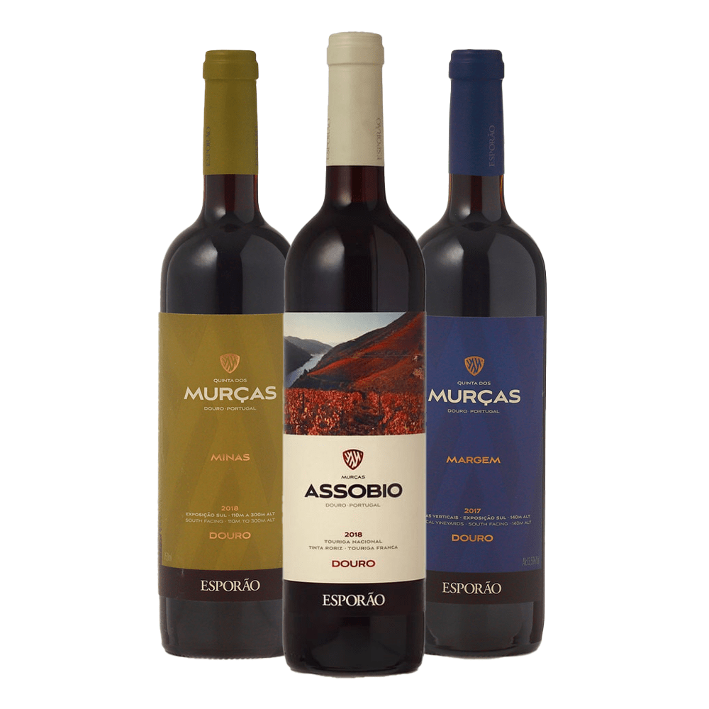 A Caixa Mista Quinta das Murças é composta por 1 unidade do Quinta das Murças Assobio Tinto 2018, 1 unidade do Quinta das Murças Minas 2018 e 1 unidade do Quinta das Murças Margem 2018.