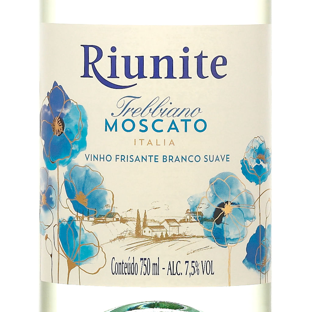 Riunite Moscato é um vinho frisante, meio-doce, que ganha suas borbulhas por um processo de fermentação natural da uva.