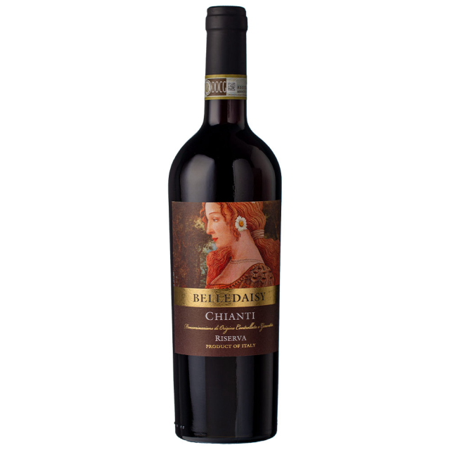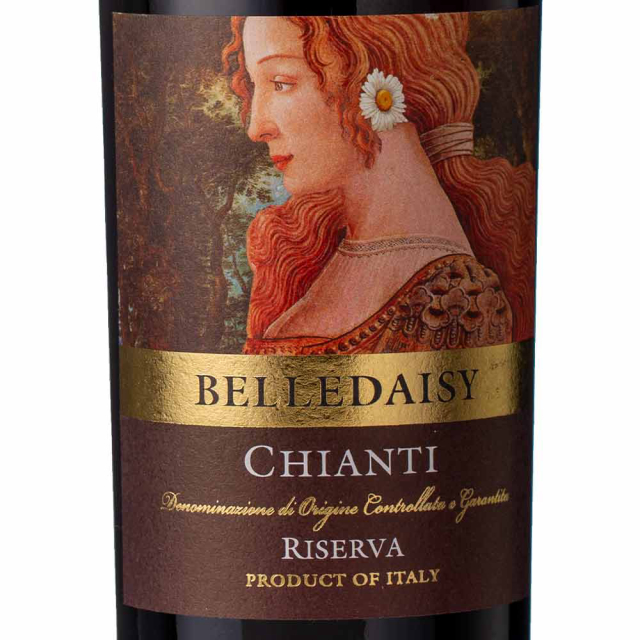 O Chianti de reserva da charmosa linha BelleDaisy foi produzido nas colinas de Colli Fiorentini e engarrafado com o icônico rótulo da reinterpretação da “Bella Simonetta”, de Botticelli. Esta estampa é uma homenagem do enólogo à sua esposa Margherita (“Daisy”), a quem atribui a razão do seu sucesso.