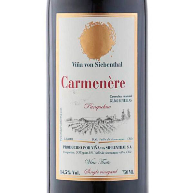 Carménère de vinhedos selecionados de Panquehue elaborada por Mauro von Siebenthal. Complexidade aromática com frutas negras, pimenta preta e alcaçuz, 12 meses em barrica francesa.